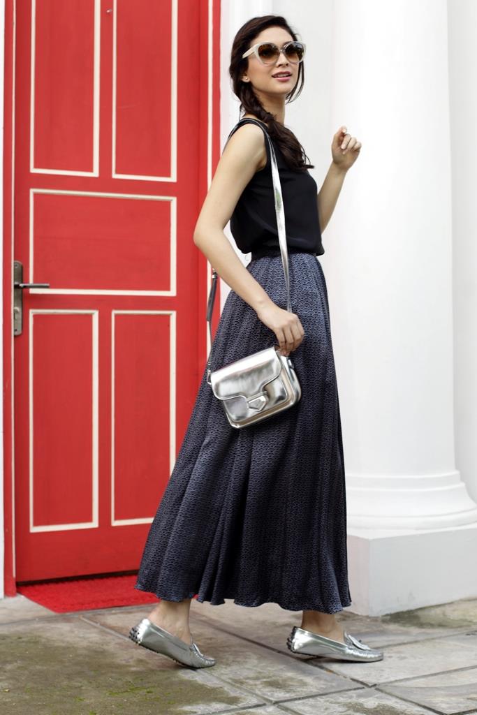 Dominasi warna gelap biasanya mewarnai koleksi fall winter. Ingin nyaman memakai warna gelap tanpa merasa kegerahan? Pilih yang berbahan ringan seperti sutra. Agar tidak terkesan muram, pilih warna perak sebagai pelengkap.