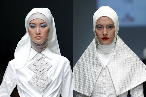 Eye shadow biru muda bisa jadi padanan gaya hijab Anda. Atau baurkan dengan silver atau abu-abu jika tak ingin terlalu mencolok (runway: Kara Indonesia, Norma Hauri).