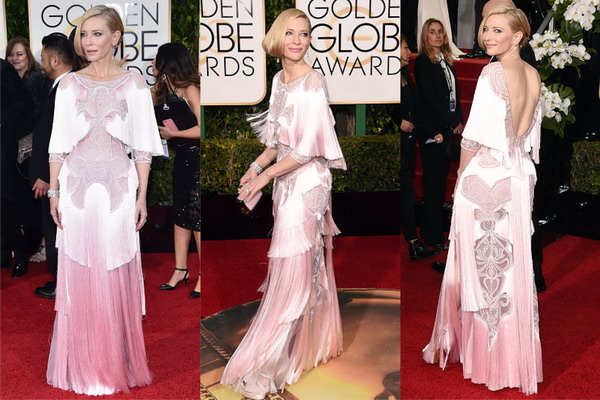 Dikenal fashion-forward, Cate Blanchett memilih gaun Givenchy Haute Couture yang jauh dari definisi aman. Detail rumit di depan, samping hingga belakang gaun ini memang mengundang debat.