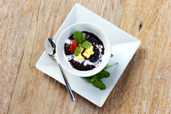 Bubur Injin: Untuk penggemar makanan manis, bubur ketan hitam dengan gula merah ini tanpa santan. Ditambah potongan mangga dan stroberi, 422 kalori per porsi harus Anda imbangi dengan kerja keras, ya....