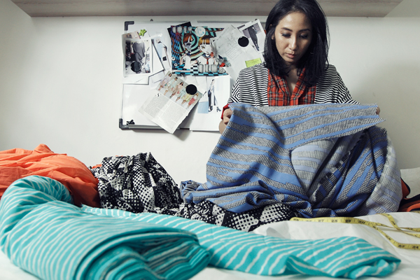 Begini proses Oline merancang. Pertama, ia menyampirkan bahan-bahan di manekin. Setelah puas dengan bentuknya, baru bahan-bahan tersebut dibuka untuk dibuat polanya kemudian dibuat sample baju. Ia dan tim kemudian berdiskusi tentang sample tersebut. “Kalau ada yang kurang, kami revisi,” ujarnya. Bisa saja di tengah-tengah proses itu, Oline merasa ada yang kurang dengan rancanganya. Jika itu terjadi, ia biasanya ‘semedi’ di kamar bahan untuk mencari inspirasi.